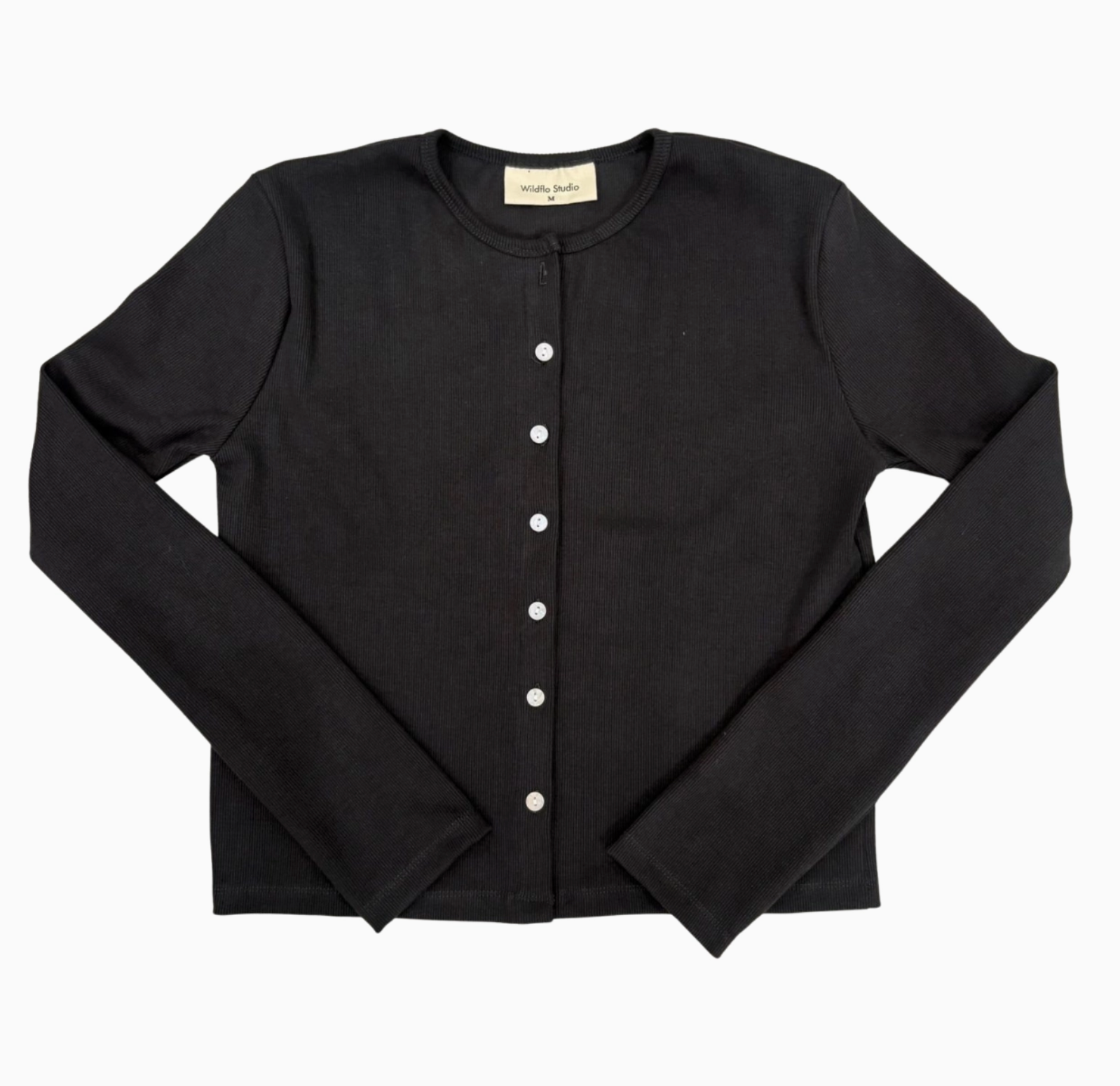 The Cotton Rib Button-Up Cardigan is made from a breathable blend of 96% cotton and 4% elastane, offering the softness of cotton with a touch of stretch.