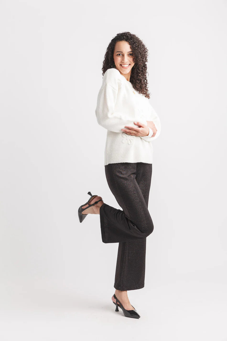 Add a touch of whimsy with our Daisy Rope 3D with Shimmer Sweater. Featuring delicate 3D florals and a subtle shimmer, it’s perfect for garden parties, brunch dates, or cozy evenings with a hint of sparkle.