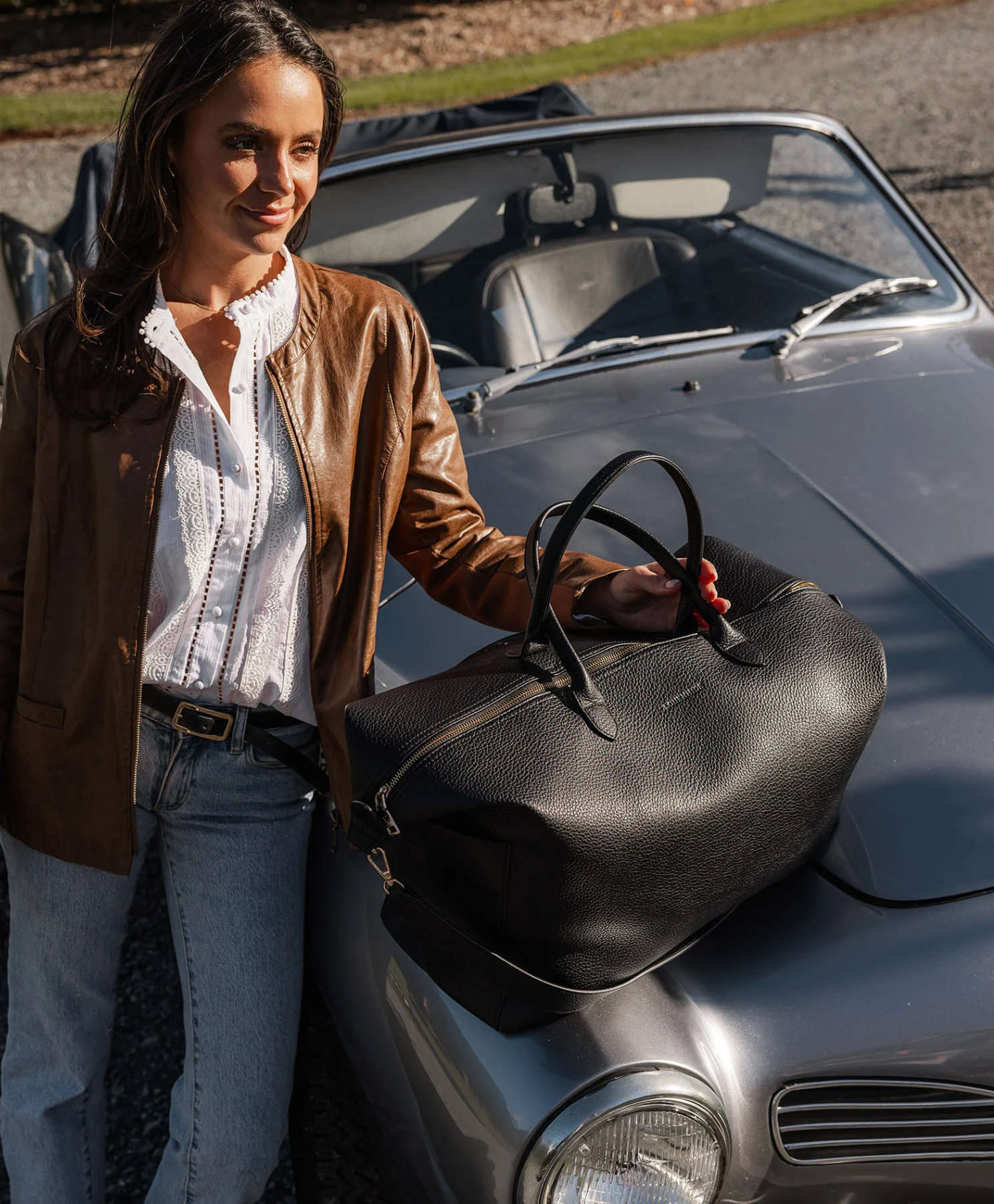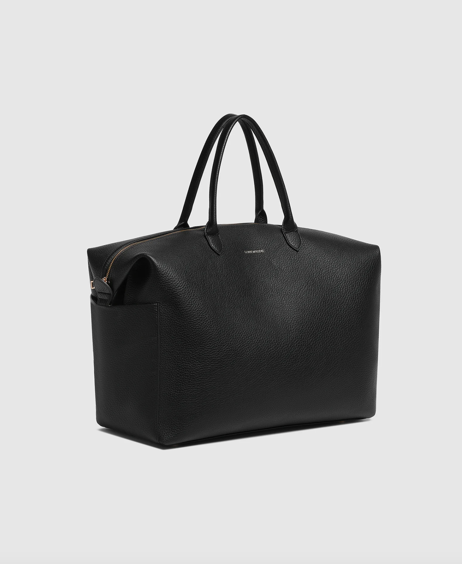 The Louenhide Ohio Overnight Bag is the ideal travel carryall for holidays or business trips. Designed with a compact, rectangular silhouette, this sleek women's overnight bag is perfectly sized to fit in overhead luggage compartments. Featuring luxe, smooth vegan leather, a spacious interior with a secure zip closure, and two external slip pockets on each end, this women's travel bag is both stylish and functional. The also comes with a clear plastic pouch to secure your cosmetics and prevent leaks. With three ways to wear, carry this classic unisex overnight bag by the long top handles, over the shoulder with the detachable crossbody strap, or hands free with the hidden trolley sleeve effortlessly slipped over your suitcase handle.