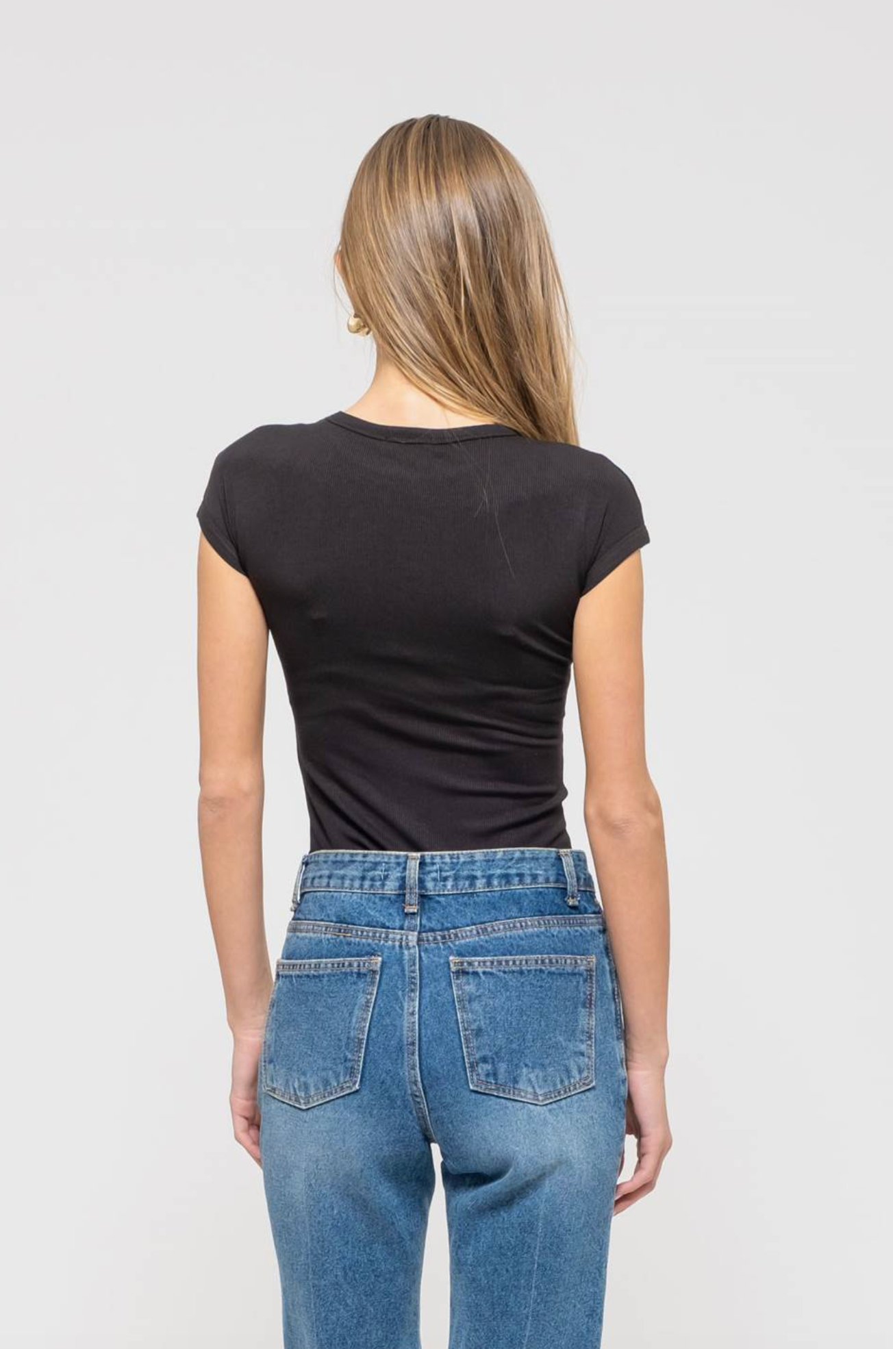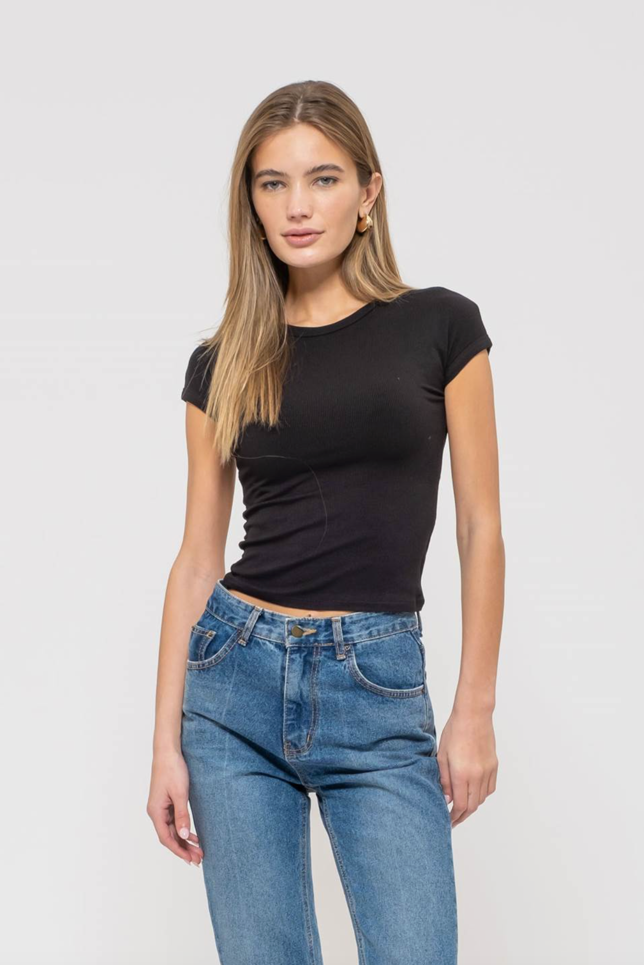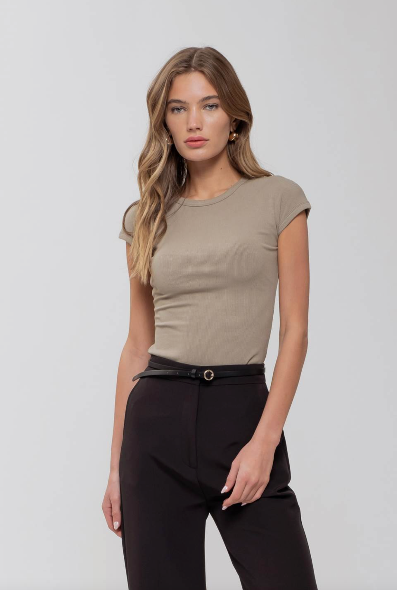 ROUND NECKLINE SHORT SLEEVE RIBBED TOP
