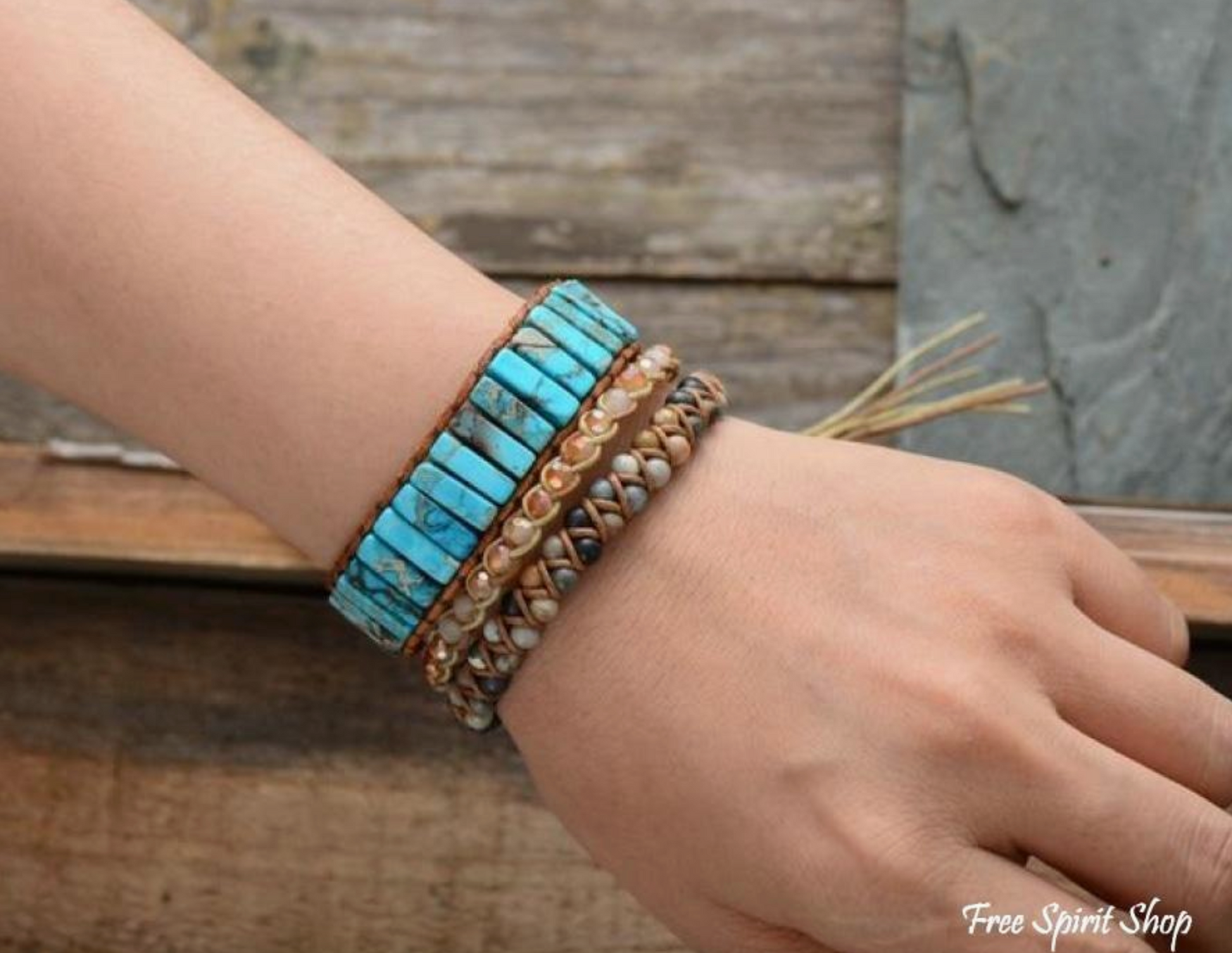 Materials: Jasper, Genuine Leather Metal: Stainless Steel Size: Around 33.5 inches + 3 closures for adjustment